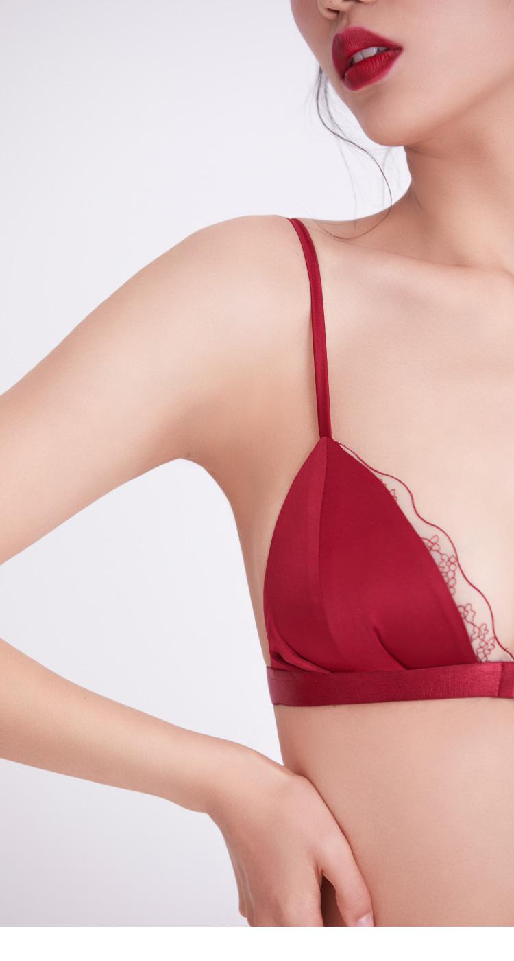 【21春夏】AuroraAlba情人节酒渍玫瑰色三角杯色丁拼刺绣蕾丝花边软杯内衣