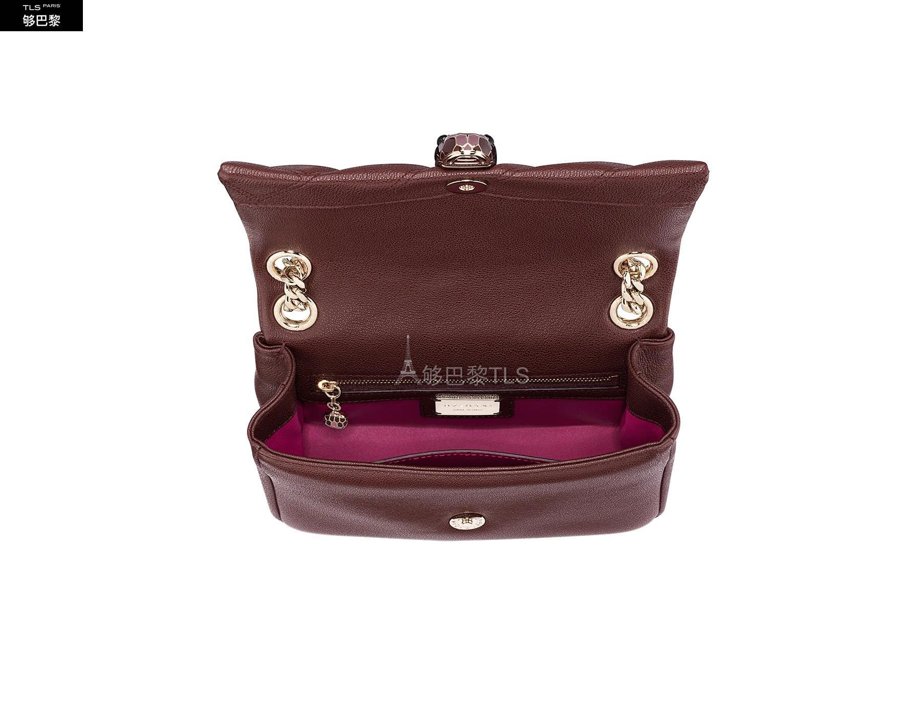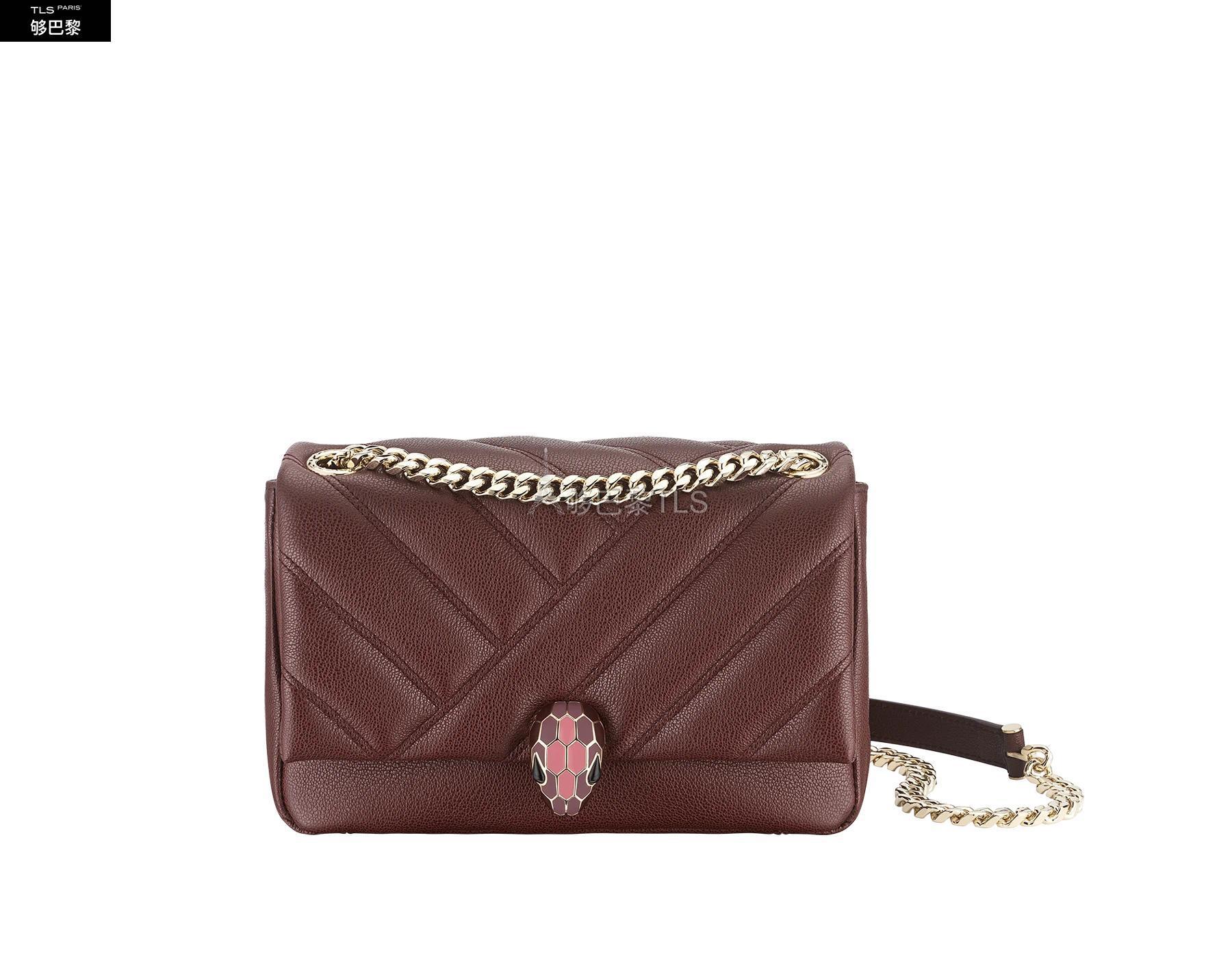 Pret a faire son entree dans la famille Serpenti avec son design pratique et sophistique, le sac porte epaule Serpenti Cabochon presente un contraste original avec un motif exclusif legerement *w*matelasse et des details en metal audacieux. Le motif *w*matelasse geometrique, inspire par la surface ondulante des pierres precieuses taille cabochon, confere encore plus de douceur au corps de ce sac en cuir de veau graine couleur bordeaux Oxblood. Seduisant fermoir Serpenti en laiton dore et email couleur bordeaux Oxblood degrade de tres clair a clair avec yeux en onyx elegants. L’accessoire parfait pour les tenues de jour sophistiquees, ce sac se pare d’une chaine epaisse coulissante dite « gourmette » et d’une bandouliere en cuir confortable, permettant un porter polyvalent. Petit modele dote d’un compartiment, d’une poche a fermeture eclair a l’interieur et d’une poche ouverte. Plaq
