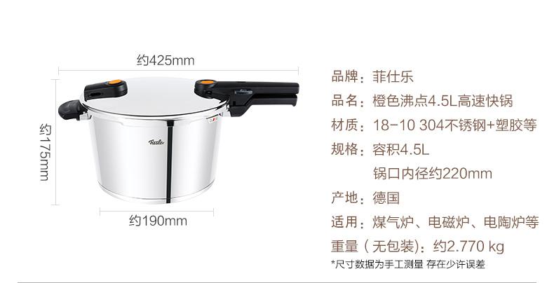 Fissler/菲仕乐 橙色沸点22厘米4.5升高速快锅 压力锅