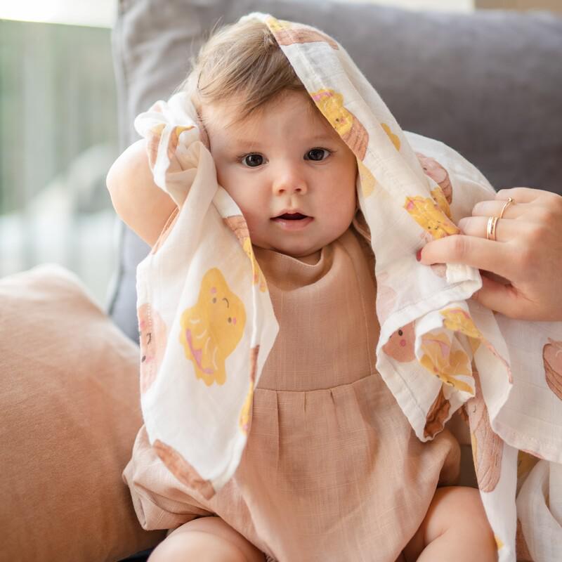 •70%竹子和30%有機棉製成嬰兒包被/包巾 - 點心 (尺寸為120 x 120cm)