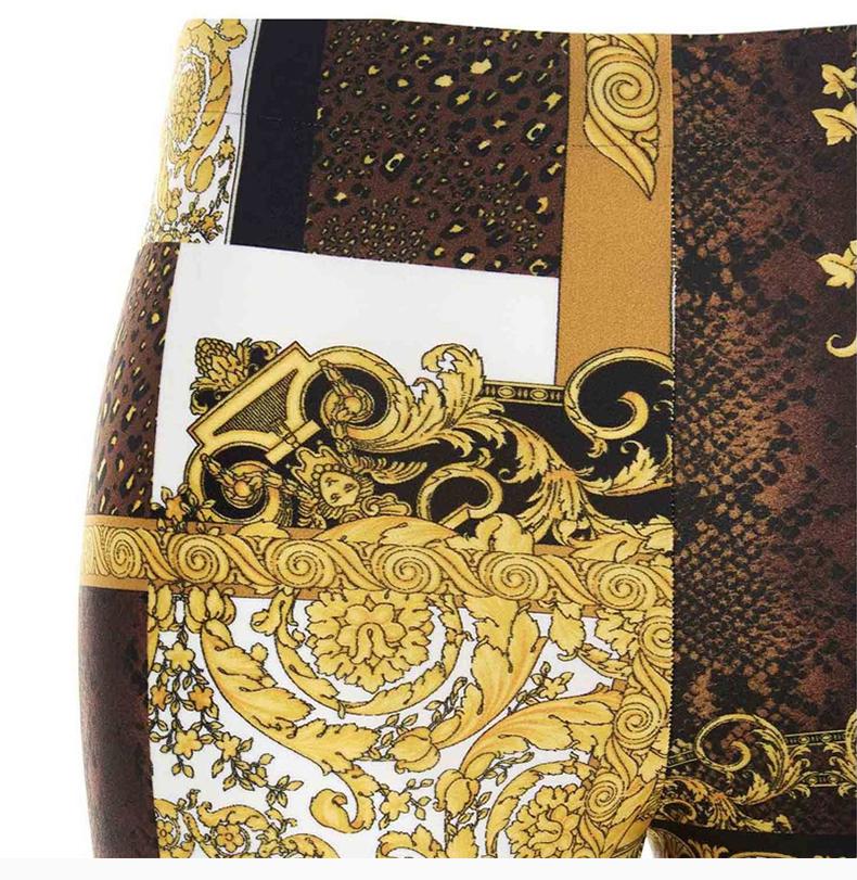 【预计两周左右发货】VERSACE 范思哲 女士 服装 21春夏 黄色时尚印花紧身打底裤休闲裤 女士休闲裤
